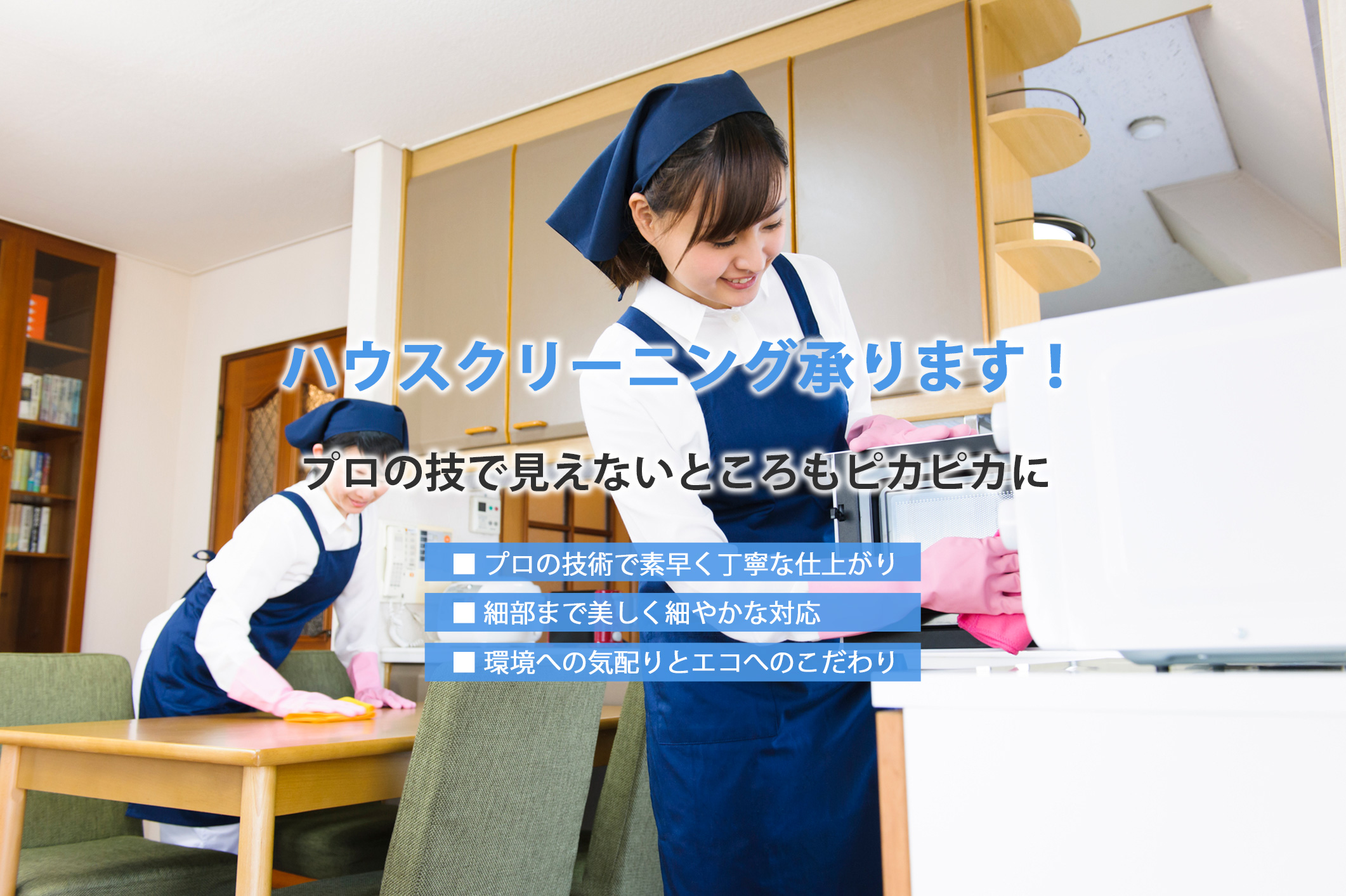 お掃除のプロである経験豊富なスタッフがお伺いいたします。